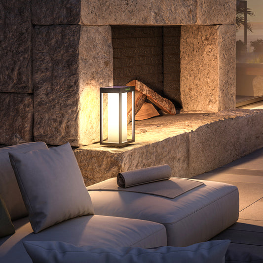 Borne solaire LED blanc chaud RADIA MINI MOON aluminium éclairage puissant H35cm