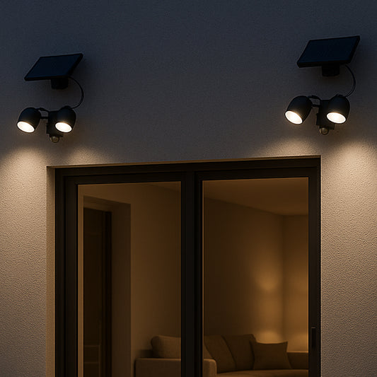 Projecteur solaire deux têtes orientables éclairage puissant panneau solaire déporté LED blanc WALEE BLACK avec détecteur de mouvement H15,4cm