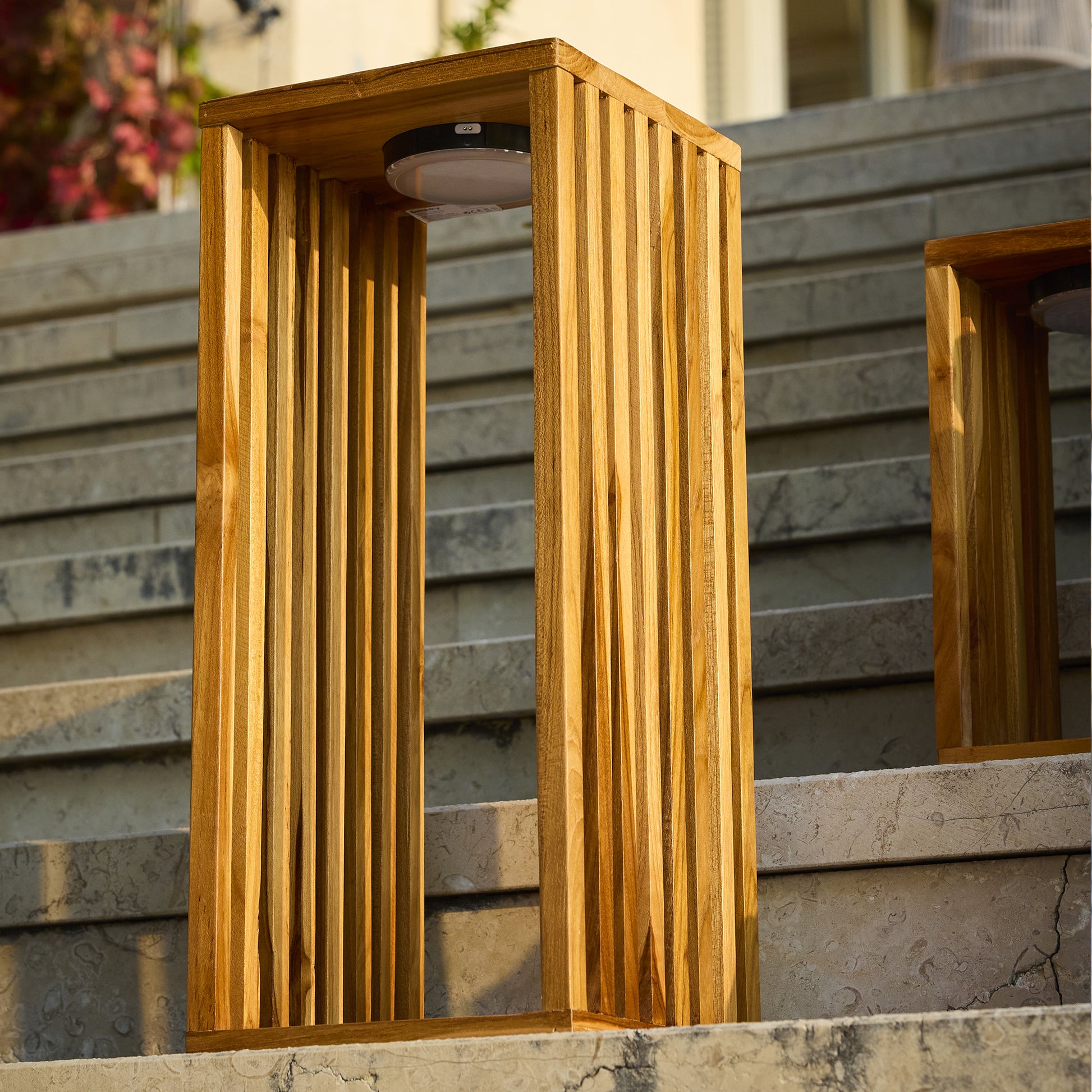 Lanterne solaire décorative LED blanc chaud CHENNAI TALL en bois teck massif H50cm