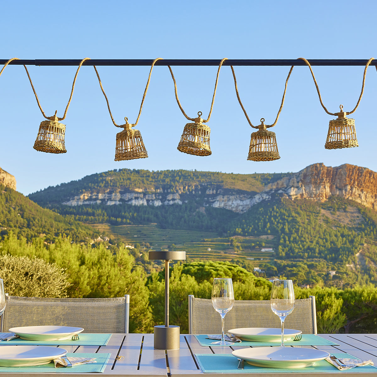 Guirlande lumineuse solaire et sur secteur raccordable en corde 20 ampoules transparentes LED blanc chaud dimmable SAMOA LIGHT HYBRID 13m