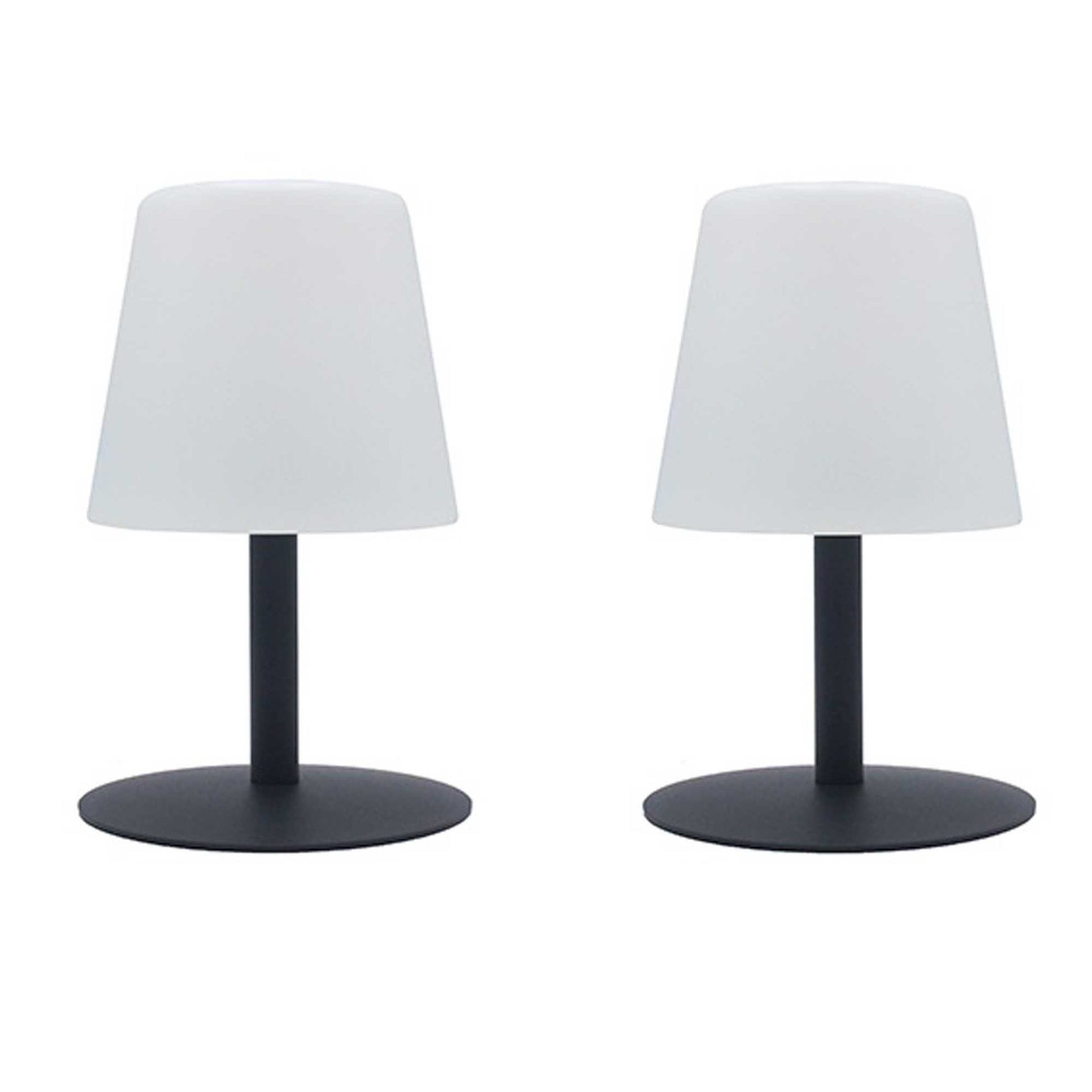Lot de 2 Lampe de table sans fil pied en acier gris LED blanc chaud/blanc dimmable STANDY MINI Rock H25cm