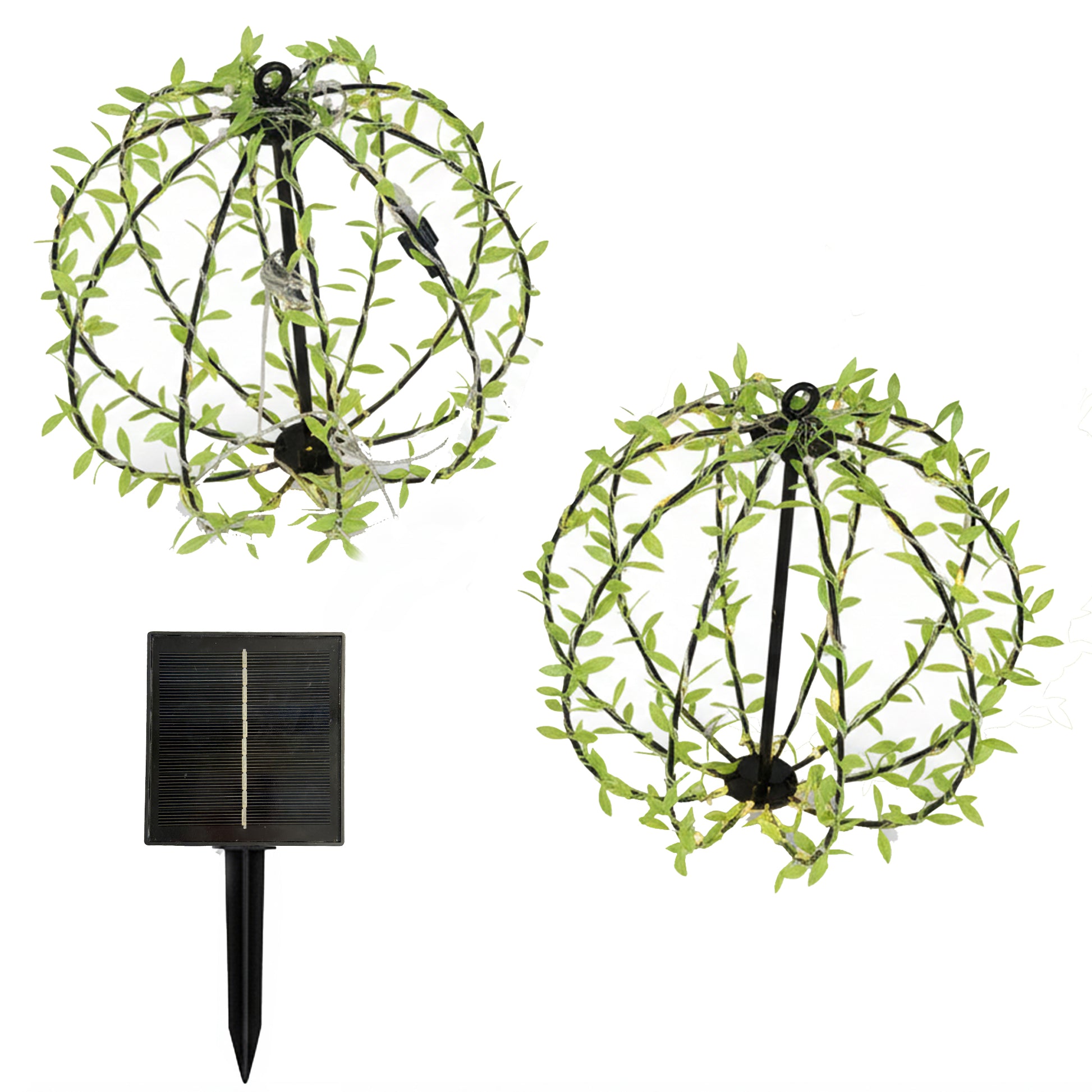 Lot de 2 suspensions solaires boules lumineuses et feuillage avec panneau solaire déporté 2x BALL FESTY D30cm