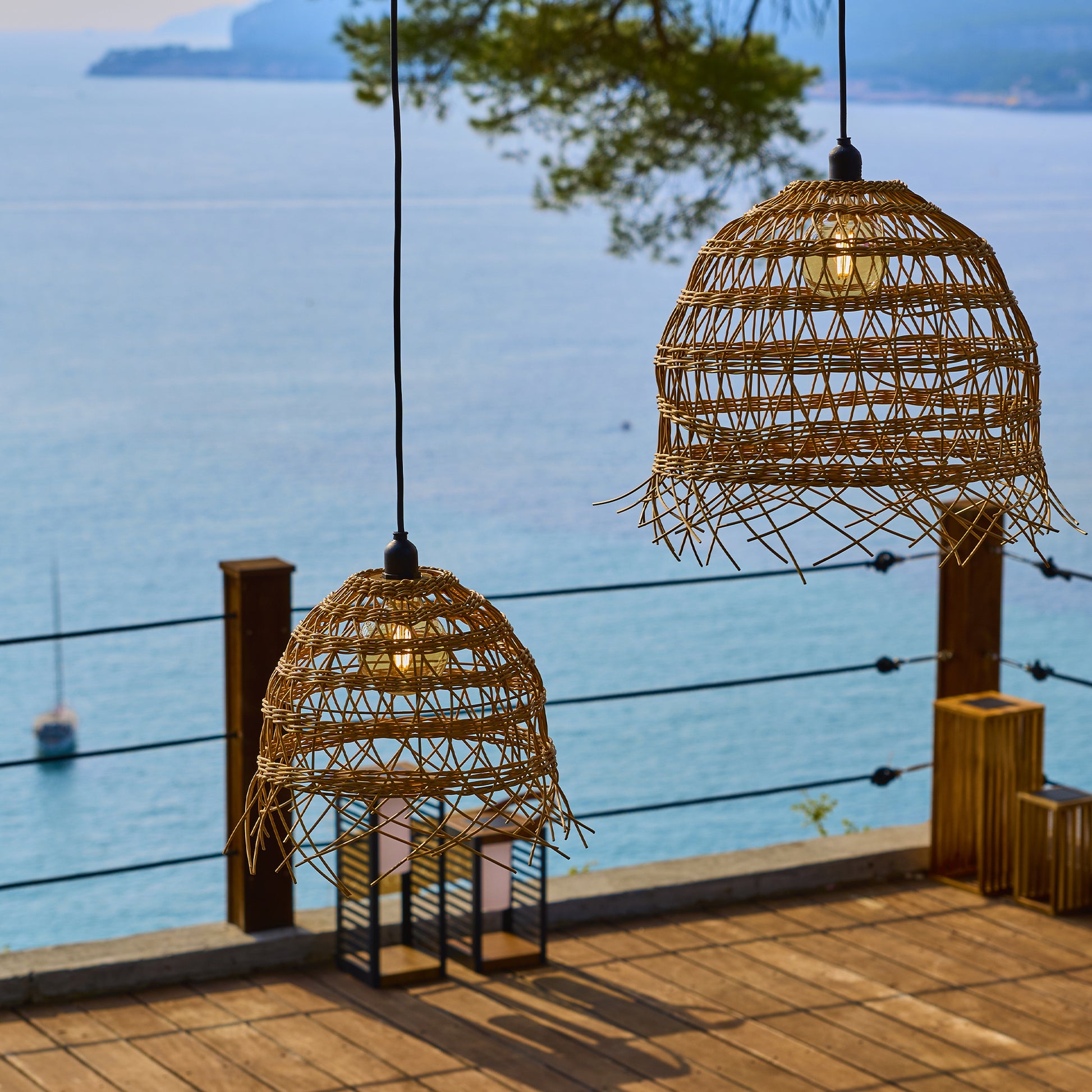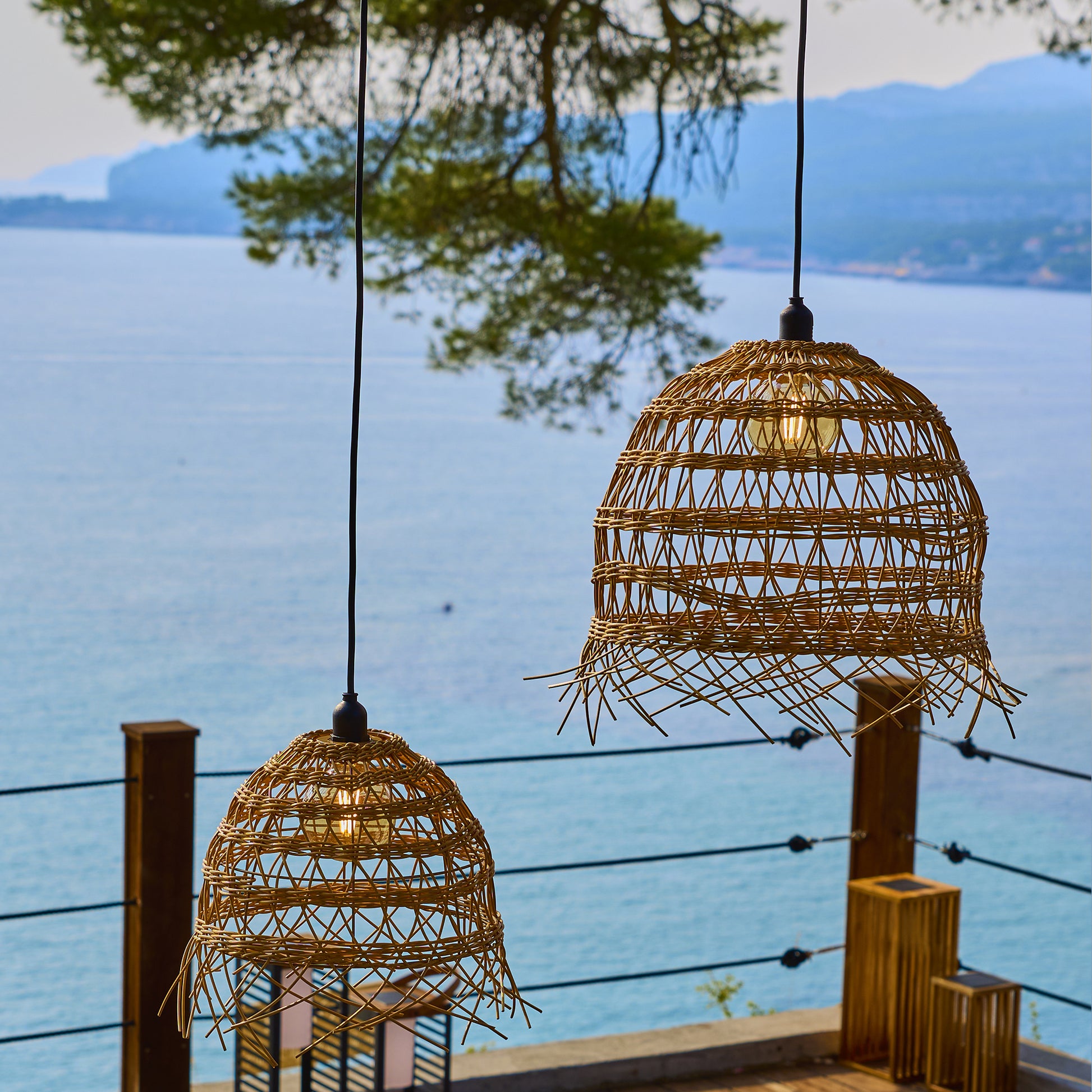 Lot de 2 suspensions sur secteur pour l'extérieur 2X HAWAII LONG OUTDOOR CABLE en poly rotin style bohème 5m de longueur de câble